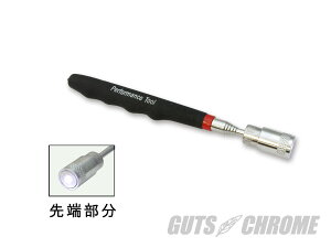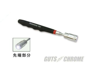 ガッツクローム マグネットピックアップツールドラッグスペシャリティーズ製便利なLEDライト付き。サイドのカバー付なので奥に差し込むときも横面に引っ掛からないのでスムーズに進みます。整備、メンテナンス中に小物やビスなどを落と