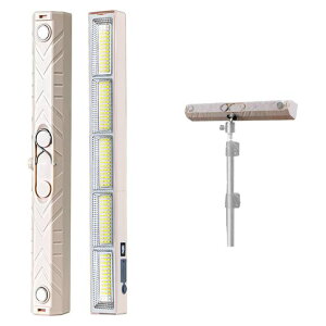 底面にマグネット付き。 特徴●LEDタイプ:COB LED●バッテリータイプ:リチウムイオンバッテリー(3.7V 700mAh)●点灯時間:約1.5時間(High)、約3.5時間(Low)、約1.5時間(メインライト背面)、約3時間(...