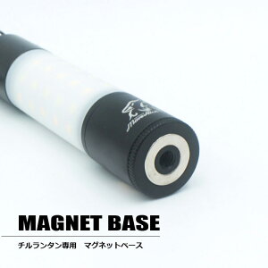 チルランタンに取り付け可能なマグネット台です。 チルランタン本体下部のレンズ部を外し、そこにはめるだけの簡単装着。 ランタン本体にマグネットが着くことで、スチール製のテーブルや車などにしっかりとランタンを置くことができ