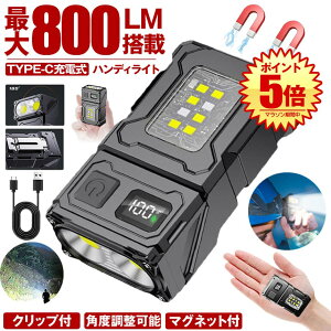 懐中電灯 充電式 小型 ハンディライト 作業灯 led ライト キャップライト クリップライト COB クリップ 帽子 最強 ハンディ 磁石 マグネット USB TYPE-C フラッシュライト