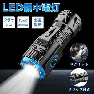 LED懐中電灯 LEDライト ハンディライト フラッシュライト 小型 強力 軽量 強力LEDライト3つ搭載 高輝度 米軍規格 六つ点灯モード TypeC急速充電 アルミニウム合金製 クリップ付き マグネット付き...