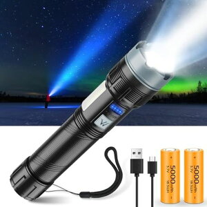 1.【多機能懐中電灯強力led充電式USBC電池式】:超明るいロングビームスポットライト+別個の明るいサイドフラッドライトランタン+充電式大型バッテリー10000mah+持ち運び用ショルダーストラップ...