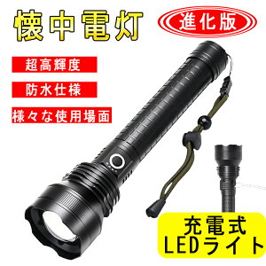 商品詳細 懐中電灯 LED 強力 小型 充電式 XHP70 大容量 2600mAh PSE認証済み サイドライト付き IPX6防水【サイズ】 ●横約17.4cm×縦約4.5cm×高さ約3.5cm ●素材:アルミニウム合金...