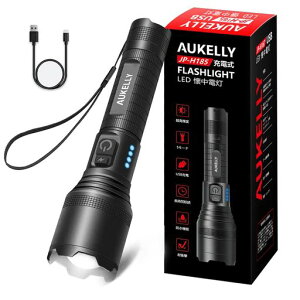 【最新チップを搭載圧倒的な超高輝度LED懐中電灯】星(塗り潰し)AUKELLY最新型番H185充電式懐中電灯はアメリカ製最新版P60LEDチップを搭載。通常XML-T6懐中電灯の約4倍の明るさを実現できる高輝度...