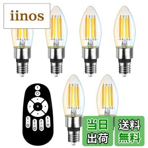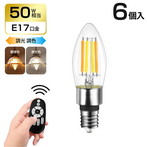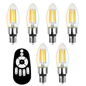 シャンデリア電球 6個入り B11 E17口金 600lm 消費電力4.5W(50W形相当) リモコン付き 燭台電球 蝋燭型 クリア電球 シャンデリア形 フィラメント電球 無段階調光 90%省エネ 広配光...