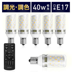 LED電球 40W形相当 E17口金 500LM 調光 調色 LEDランプ リモコン付き 消費電力5W 遠隔操作 昼光色 昼白色 電球色 常夜灯 広配光タイプ 省エネ 高輝度 1個入 (電池別売)。サ...