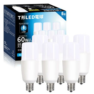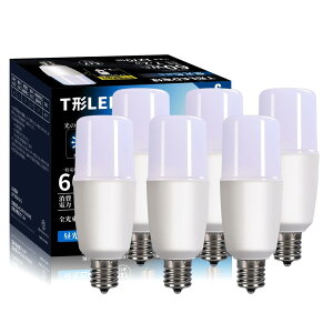 LED電球 T形 E17口金 60W形相当 7.2W 昼光色 6500K 1270lm 高演色性 断熱材施工器具対応 電球型蛍光灯 全方向タイプ 風呂 キッチン 洗面所照明 T形タイプ 6個セット。