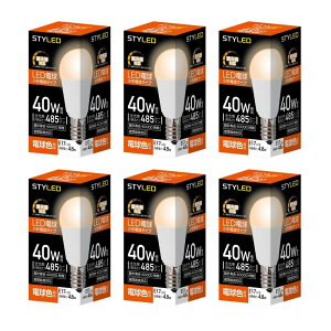 スタイル:40W(調光器対応)◆商品名:スタイルド LED電球 6個セット E17 電球色 40W形相当 調光器対応 ミニクリプトン形 広配光タイプ 密閉器具対応 HA4D17L6【調光器対応】全光束:48...