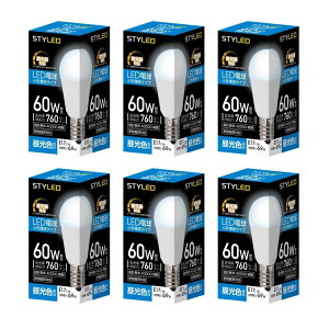 スタイル:60W(調光器対応)◆商品名:スタイルド LED電球 6個セット E17 昼光色 60W形相当 調光器対応 ミニクリプトン形 広配光タイプ 密閉器具対応 HA6D17D6【調光器対応】全光束:76...