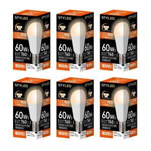 スタイル:60W(調光器対応)◆商品名:スタイルド LED電球 6個セット E17 電球色 60W形相当 調光器対応 ミニクリプトン形 広配光タイプ 密閉器具対応 HA6D17L6【調光器対応】全光束:76...