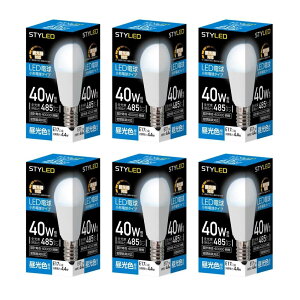 スタイル:40W(調光器対応)◆商品名:スタイルド LED電球 6個セット E17 昼光色 40W形相当 調光器対応 ミニクリプトン形 広配光タイプ 密閉器具対応 HA4D17D6【調光器対応】全光束:48...