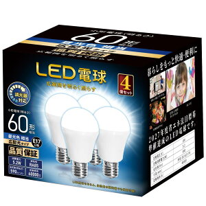 サイズ:E17-昼白色-4個入◆商品名:LED電球 E17口金 60W形相当 ミニクリプトン形 昼白色相当5000K AC100V 小形電球 調光器対応 広配光180° 演色性>85 応用場所寝室 リビングルーム...