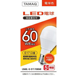 メーカー:東芝 ■ 型番:LDA6L-G-E17S60V2R ■ 商品名:LED電球 ■ 形状:ミニクリプトン形 ■ 口金:E17 ■ 配光:広配光(約180°) ■ クラス:60W相当 ■ 光色:電球色 ■ 外径(mm):40...
