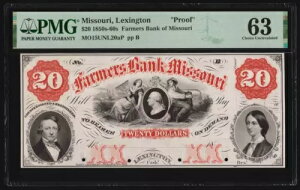 Missouri Lexington 1850's - $20 Farmers Bank **Proof** - PMG Choice UNC 63商品について売主メモ「チョイス UNC 63」額面 20ドル種類見本認証番号 1997...