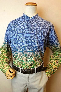 メンズファッション ブランド「ALEXINGH プリント柄バンドカラーシャツ」イタリアのデザイナーズブランド「ALEXINGH アレックスイナフ」。グラデーションカラーが特徴のボタニカルプリント柄生地使用、バンドカラーのカジュアルシャツで