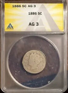 Key Date 1886 5c Liberty V Nickel AG 3 ANACS # 7472092 + Bonus商品についてデノミネーション 5C循環/非循環 循環コインリバティ1886年認証番号 7472092ストライク...