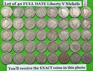 Liberty V Nickel Lot of 40 Coins ~ ALL FULL DATE LIBERTY HEAD V NICKELS #V150商品について販売者のメモ「完全な日付と裏面の完全な V。写真にあるのと全く同じコ...