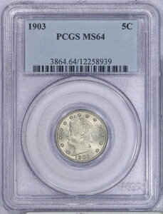 1903 Liberty V Nickel 5c PCGS MS64商品について流通/非流通額面 5セントコイン リバティ発行年 1903年刻印タイプ ビジネスグレード MS 64造幣局所在地 フィラデルフィア製造国/地域 アメリカ合...