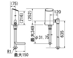 イナックス[INAX]小便器用金具 UF-8R ストール用小便水栓 呼び径13mm 40mmφ16mm差ヘリウズ管付