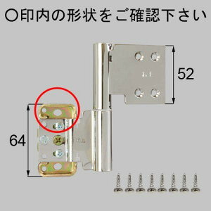 部品名 : 室内窓用丁番(上)右 商品コード : MDT43BR (MDT43FR) 色 : シルバー(鏡面) 内容物 : 本体(MDT43BR)×1、取付ネジセット付き(予備2本)×1 備考 : 刻印:右上・ネジ穴補強材(埋め木セッ...