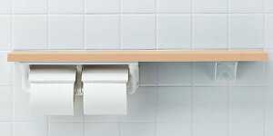 棚付2連紙巻器(高耐荷重タイプ) ●色:〈紙巻器本体〉WAのみ 〈棚〉ウォルナット ●寸法(mm):328×110×116(mm) ●材質:〈紙巻器本体〉ABS樹脂