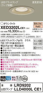 電気工事の資格を持つ電気工事店・工務店等に施工をご依頼下さい。XED3201LCE1(本体:LRD9201+ランプ:LLD4000LCE1)LED(電球色)浅型8H防湿型・防雨型LEDフラットランプφ70 クラス700 1灯(口金GX...
