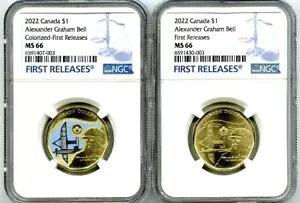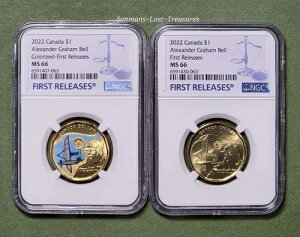 2022 $1 CANADA NGC MS66 ALEXANDER G BELL LOON LOONIE DOLLAR MATCHED 2-COIN SET商品について流通/非流通額面 1ドル材質 真鍮メッキ鋼カラーコインと無色コイン...