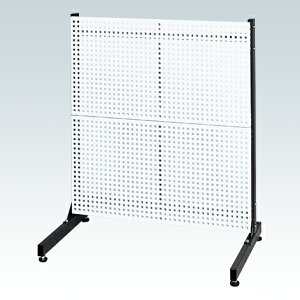 特徴 ●パンチングパネルタイプになります。 ●単体でも壁面でも簡単設置。 1台で2通りの使い方ができます。 ●支柱を脚部の中心に取付けますと、単体で安定した設置ができます。 ●支柱を脚部の後側に取付けますと、壁沿いにぴったり設