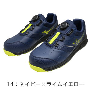 2024年秋冬 ミズノ /メンズ 作業靴 4Eワイド BOAシステム。●カラー●(09)ブラック/ゴールド(14)ネイビー/ライムイエロー。●サイズ●25.5cm 26.0cm 26.5cm 27.0cm...