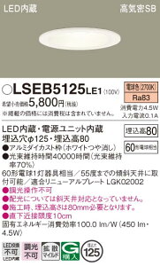 ●メーカー:パナソニック ●型式:LSEB5125LE1 ●出荷目安:5営業日以内