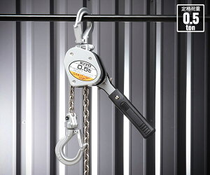 超小形・軽量で持ち運びに便利。 高所作業や狭い場所でも活躍。 手引力が小さく、荷締や固定がピシッと確実。 定格荷重 0.5t 標準揚程 1.2m(0.5t) 周囲温度 -40℃〜+60℃