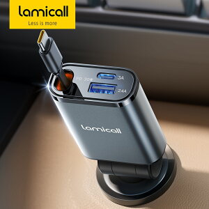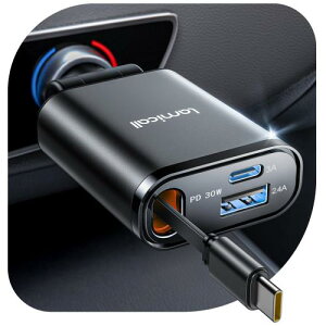 商品名:【超Miniサイズ】 Lamicall 車充電器 巻取り式 シガーソケット:タイプC PD30W/PPS対応 急速 総57W 3in1 車載充電器 12/24V車対応 3台同時可能 75cm Type-C...