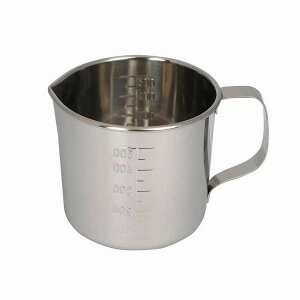 耐久性と耐食性に優れたステンレス製計量カップ。内側は計量に便利な目盛付きです。取手と注ぎ口付きです。目盛表示(cc):100/200/300/400/500。内寸:φ92×H90mm。容量:約500cc...