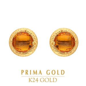 純金ピアスの中央にボリュームのあるシトリンオレンジ色に少しだけブラウンを混ぜたような深みのあるカラーのシトリンを純金フレームに一石。太陽のような明るさの中にも、どこか落ち着きを感じさせる独特の色合いが、耳元を品良く飾