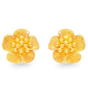 花びらから透ける肌も軽やかで清楚な印象の横顔に可愛らしさだけではないフラワーモチーフの魅力を余すところなく楽しめる純金ピアスです。花びらの隙間から透けて見える肌が軽やかな雰囲気を演出。表面には、繊細な筋を丁寧に刻み込