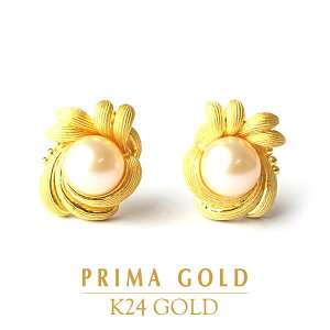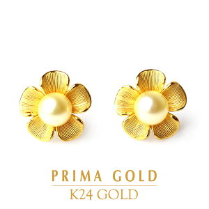 耳元で咲く花の中央に存在感のある真珠を一粒マットで上品な光の純金と女性らしい艶めきの真珠のピアス。横顔に自信が持てる端正な表情のピアスを身に着ければ、お洒落も楽しくなりそうです。肌馴染みの良いイエローゴールドの花が耳