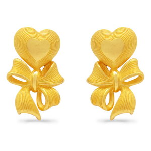 大人の可愛いいを狙うなら、キュートだけでは終わらない、上質なデザインを吟味したいもの。ハートとリボンをセンス良く盛り込んだこのピアスなら、24Kという極上の素材に裏打ちされた、ワンランク上の可愛らしさを表現できそう。2大愛