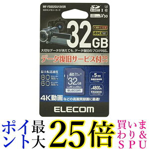 エレコム MF-FS032GU13V3R データ復旧SDHCカード(UHS-I U3 V30) 32GB●データ復旧サービス付 SDHCメモリーカード1年間の保証期間内で1回限り、無償でデータ復旧サービスを利用可能です。●UHS-I/...