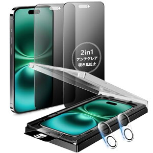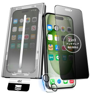 【2in1・多機能フィルム】iPhone15Promax(6.7インチ)用、新技術を取り入れた2in1 iPhone 15 Pro Max ガラスフィルム は、アンチグレア&覗き見防止機能を兼ね備えており、プライバシーを保護します。サ...