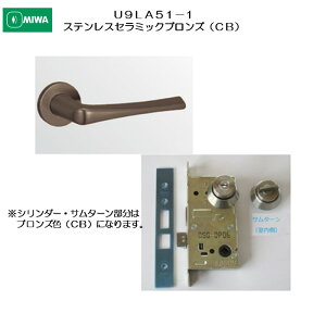 ミワロック U9LA51-1 ステンレスセラミックブロンズ(CB) レバーとケースのセット販売です。 材質:レバーハンドル ステンレス製 バックセット:51mm・64mm 片開用 LAケースは、サッシドア...