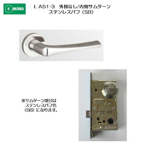 ミワロック LA51-3 ステンレスバフ(SB) レバーとケース錠のセット販売です。 外側なし/内側サムターンの片面サムターン錠です。 材質:レバーハンドル ステンレス製 バックセット:51mm・64mm...