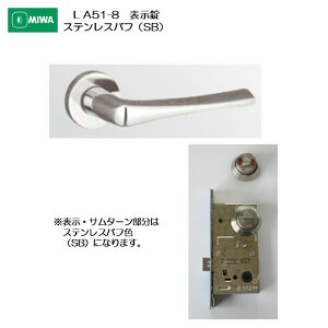 ミワロック LA51-8 ステンレスバフ(SB) レバーとケース錠のセット販売です。 材質:レバーハンドル ステンレス製 バックセット:51mm・64mm 片開用 扉厚:33-41mm LAケースは、サッシドア...