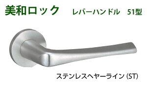 レバーハンドル錠ケースに使用できる レバーハンドル51型です。 扉厚み 33~42mm ステンレス ヘアーライン ※お取り寄せ1〜2日です ※錠ケースは別途お買上ください