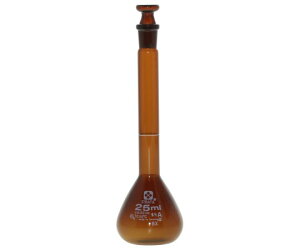メスフラスコ(全量フラスコ・スーパーグレード)茶 25mL JCSS校正証明書付 その他■特徴■●一定の体積を測るために用いられます。全量フラスコとも呼ばれます。●底の平らなフラスコに細長い首が伸びた形状で、首の部分に通常は1本の回