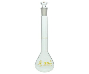 メスフラスコ(全量フラスコ・スーパーグレード)白 20mL JCSS校正証明書付 その他■特徴■●一定の体積を測るために用いられます。全量フラスコとも呼ばれます。●底の平らなフラスコに細長い首が伸びた形状で、首の部分に通常は1本の回