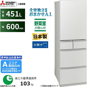 [左開き] 三菱電機 MR-MD45ML-W フラットリネンホワイト 451L 冷蔵庫 5ドア左開き 置けるスマート大容量 MDシリーズ MITSUBISHI ELECTRIC ガラスドア 日本製 野...