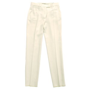 定番のトリアセテートポリエステルキャディパンツ。伸縮性と落ち感のある素材はしわになりにくく、Max Mara Studioの人気素材です。センタープレスの入った裾に向かって細身になったシガレットデザイン。シンプルなデザインは様々