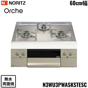 (金)まで ■ N3WU3PWASKSTESCノーリツ ガスビルトインコンロ 幅60cm Orche(オルシェ)シリーズです。N3WU3PWASKSTESCは、天板はガラストップ:シルバーミラー...