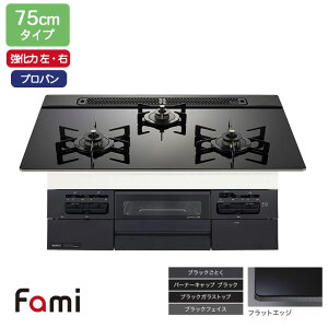 ファミ(Fami) 幅75cm 3口 都市ガス用 | ブラックトップ/ブラックフェイス ◆品番:N3WV7RWTP1-13A (N3WV7RWTP113A) ◆ガス種:都市ガス ◆形態:無水両面...