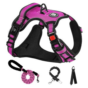 よりふさわしくて、犬の体格の変化に対しても簡単に対応可能。これ1セットだけで長時間に使えます。 【装着簡単】高品質のペットハーネスです。首回りと胴回りのところは合計三つのバックルがあり、犬の首を避けてカラダからハーネスを装着できて...